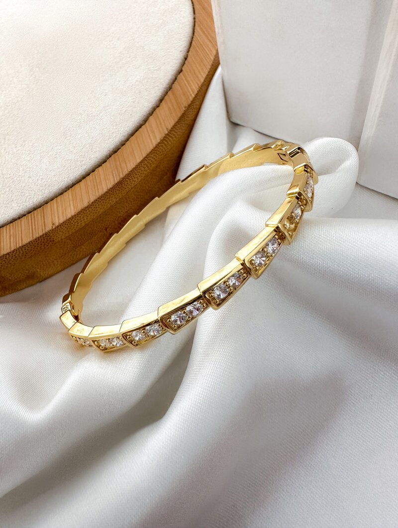 3. Bracelete Folheado a Ouro 18k e Prata Design Geométrico Cravejado