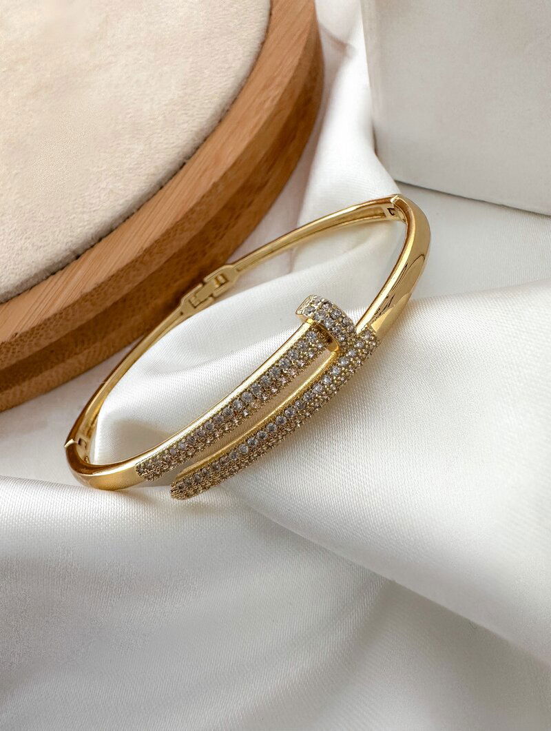 3. Bracelete Folheado a Ouro 18k e Prata Design Prego Cravejado