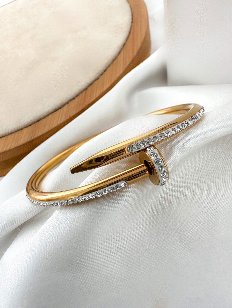 Bracelete Folheado a Ouro 18k e Prata Design Prego Cravejado com Micro Zircônias