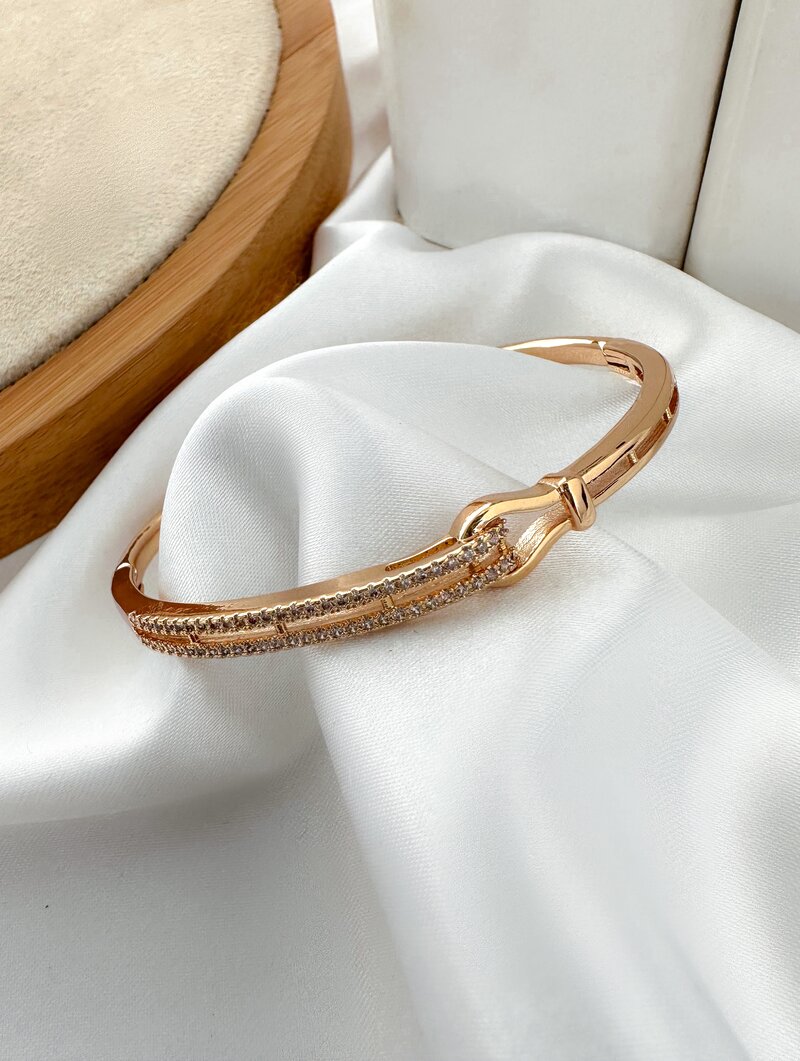Bracelete Folheado a Ouro 18k e Prata Detalhe Vazados Cravejado