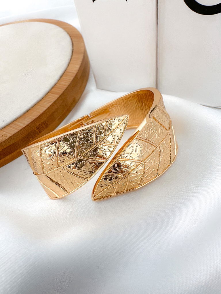 BRACELETE FOLHEADO A OURO 18K E PRATA FOLHA TEXTURIZADA