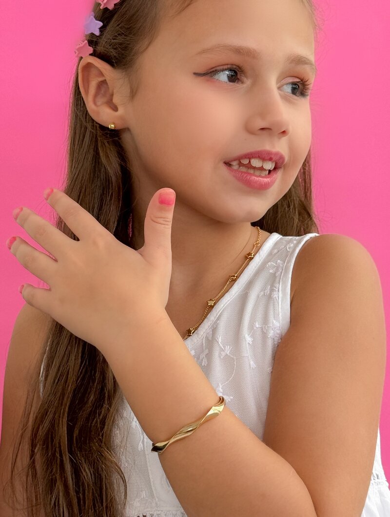 Bracelete Folheado a Ouro 18k e Prata Infantil Aro Ondulado Martelado