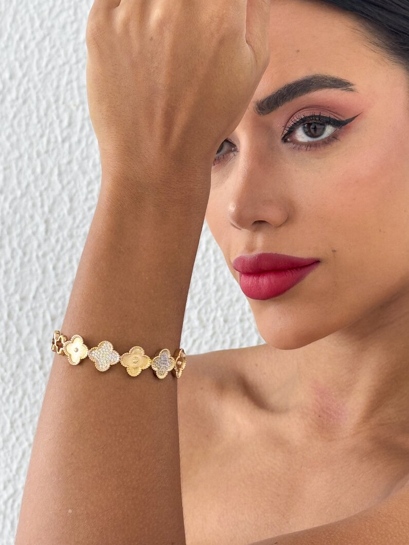 3. Bracelete Folheado a Ouro 18k e Prata Inspiração Vazado e Com Zircônia
