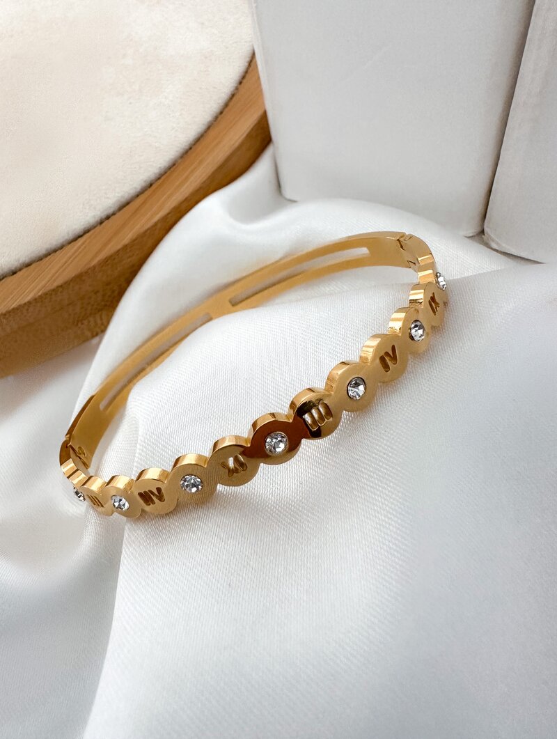 Bracelete Folheado a Ouro 18k e Prata Números Romanos com Zircônias