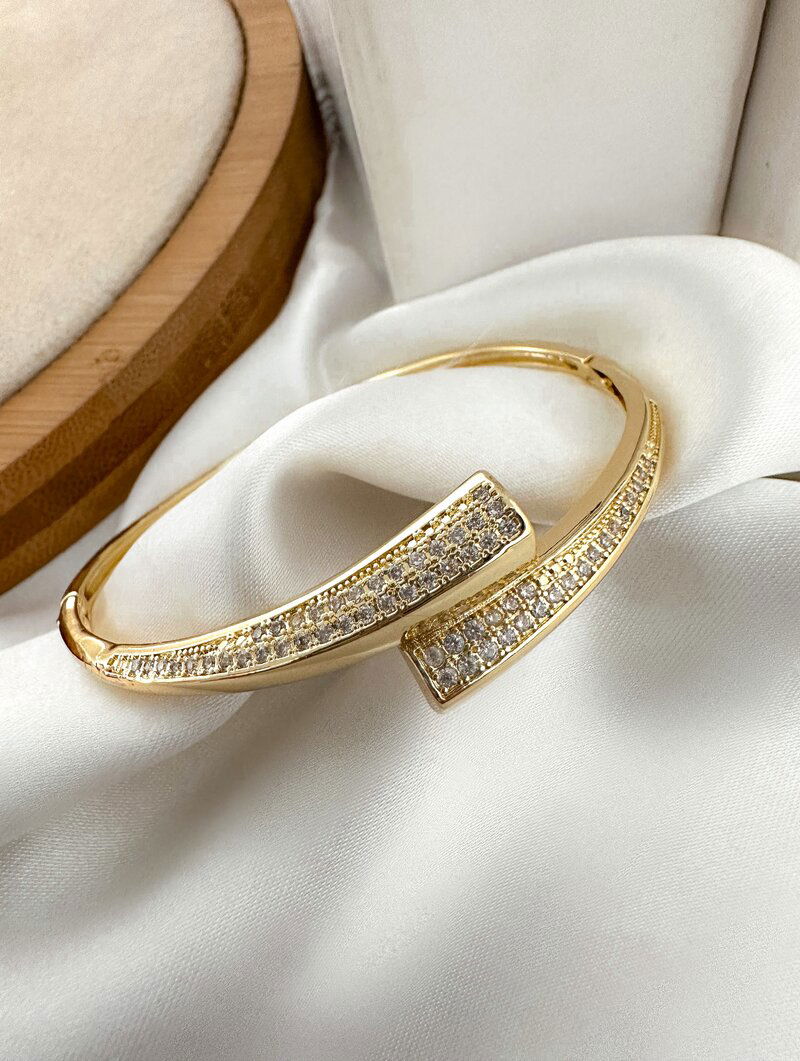 Bracelete Folheado a Ouro 18k e Prata Sobreposto Cravejado