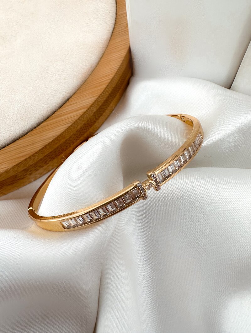 3. Bracelete Folheado a Ouro 18k e Prata Trabalhado com Navetes de Zircônia