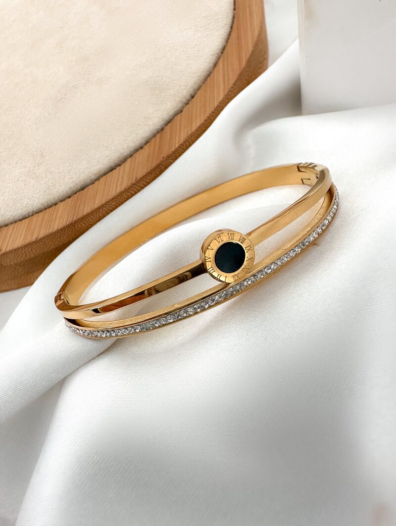 3. Bracelete Folheado a Ouro 18k Vazado com Micro Zircônias e Circulo Central