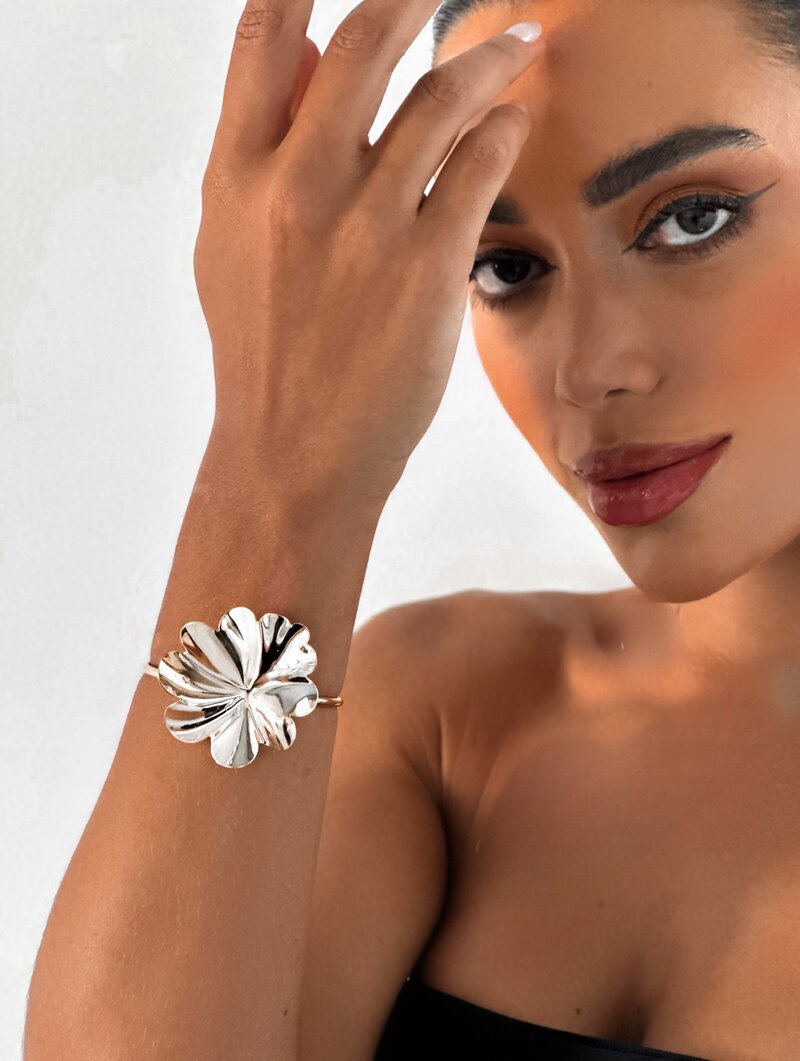 3. Bracelete Folheado a Prata 925 Flor Martelada