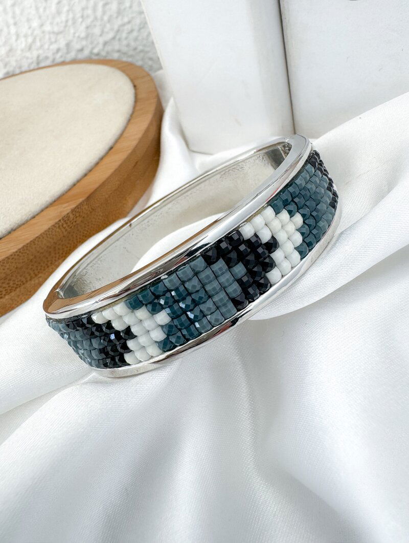 3. Bracelete Folheado a Prata Quadriculado com Cristais