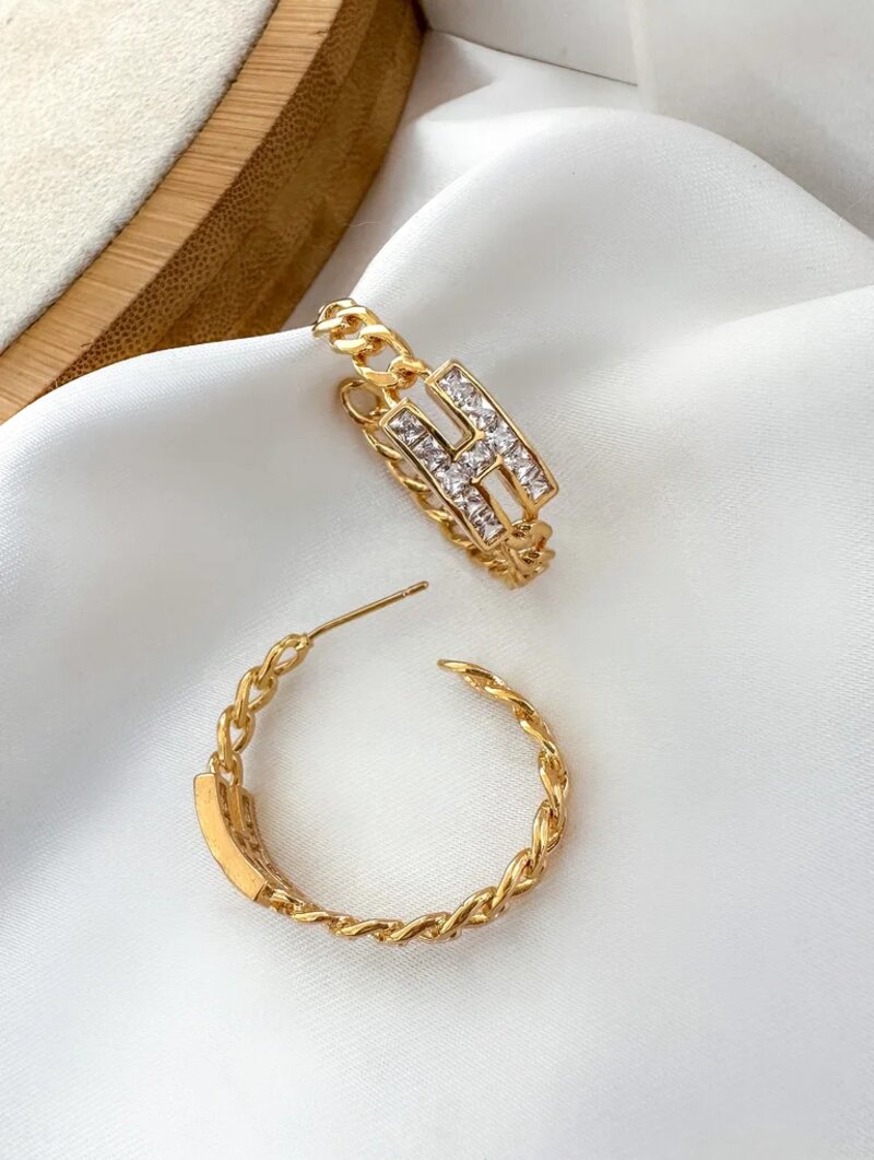 Brinco argola corrente inspiração joalheria folheado a ouro 18k e prata