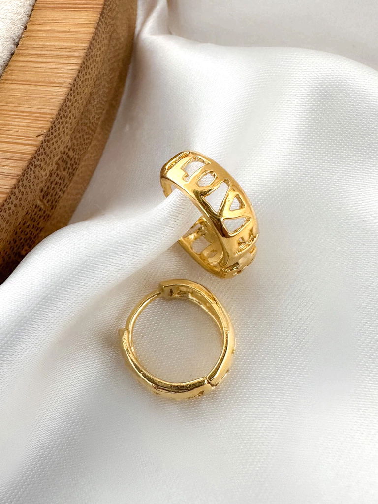 Brinco argolinha love folheada a ouro 18k e prata 925.