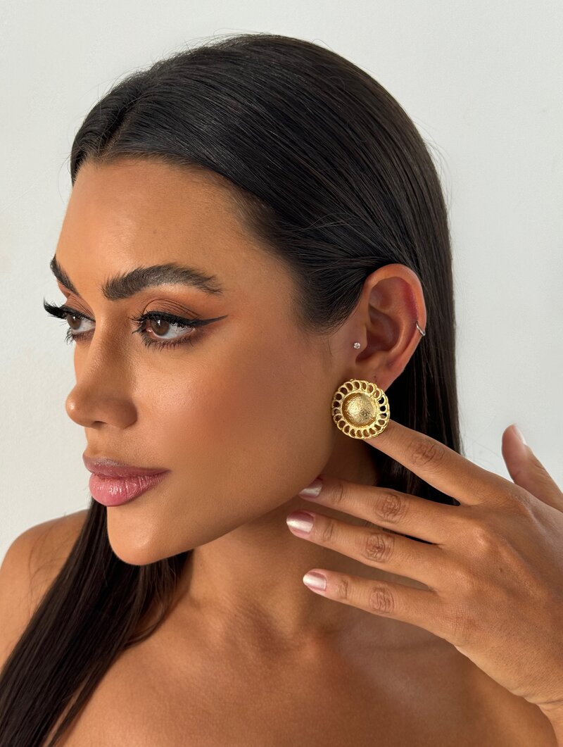 Brinco botton girassol folheado a ouro 18k