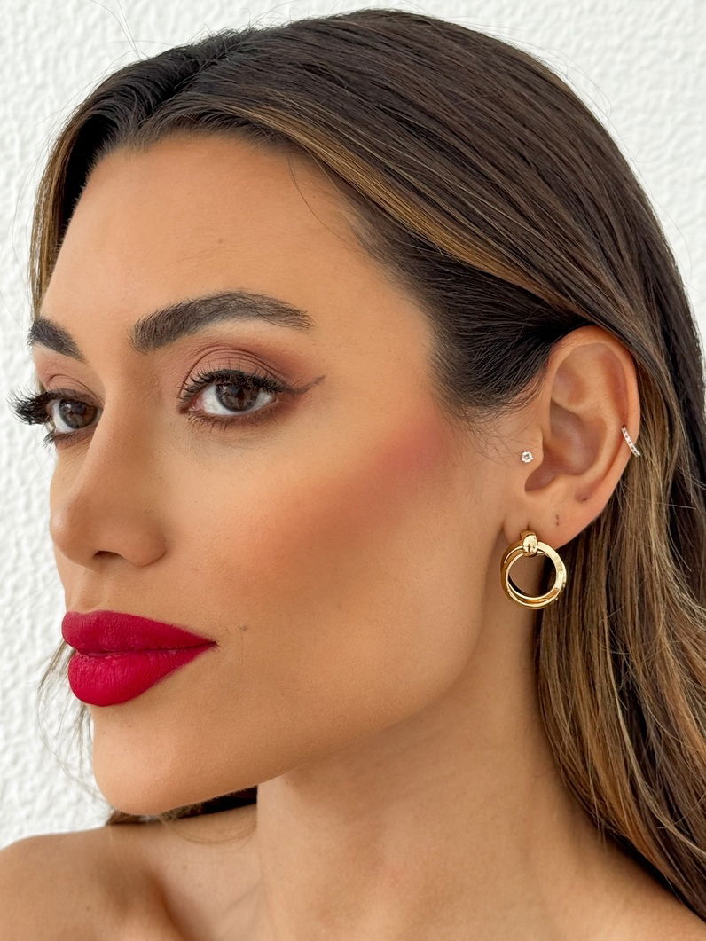 Brinco de Aço Inoxidavel Folheado a Ouro 18k Círculo Duplo Liso
