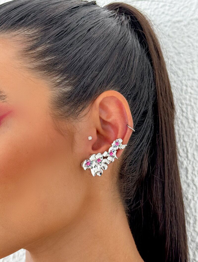 3. Brinco Ear Cuff Folheado a Ouro 18k e Prata Flores com Zircônias