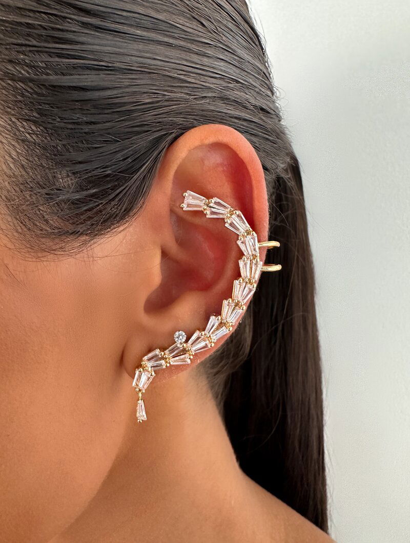 3. Brinco Ear Cuff Folheado a Ouro 18k e Prata Navetes de Zircônia