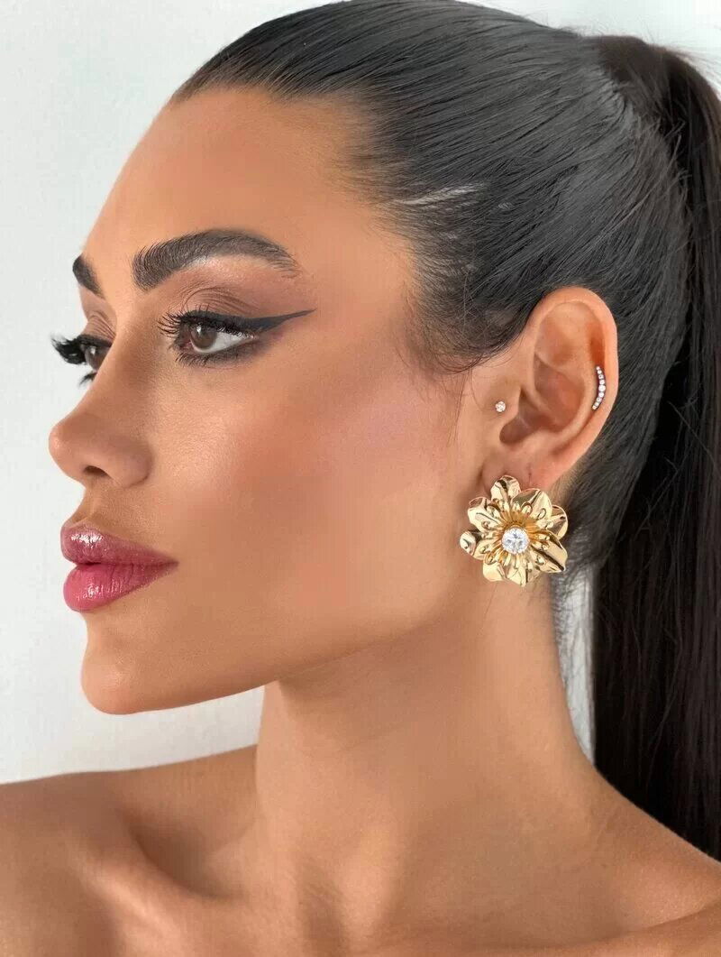 3. Brinco Folheado a Ouro 18 Flor Duas Camadas com Zircônia Central