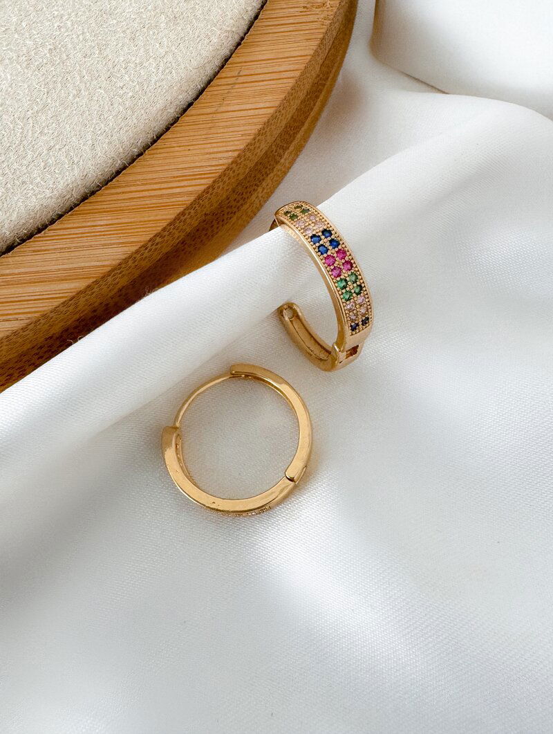 Brinco Folheado a Ouro 18k Argola com Fecho Cravejada Colorida