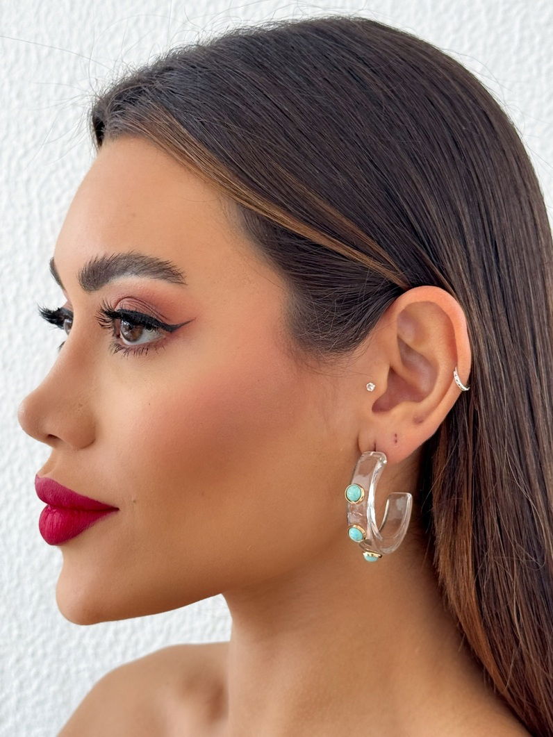 Brinco Folheado a Ouro 18k Argola com Pedras Naturais G