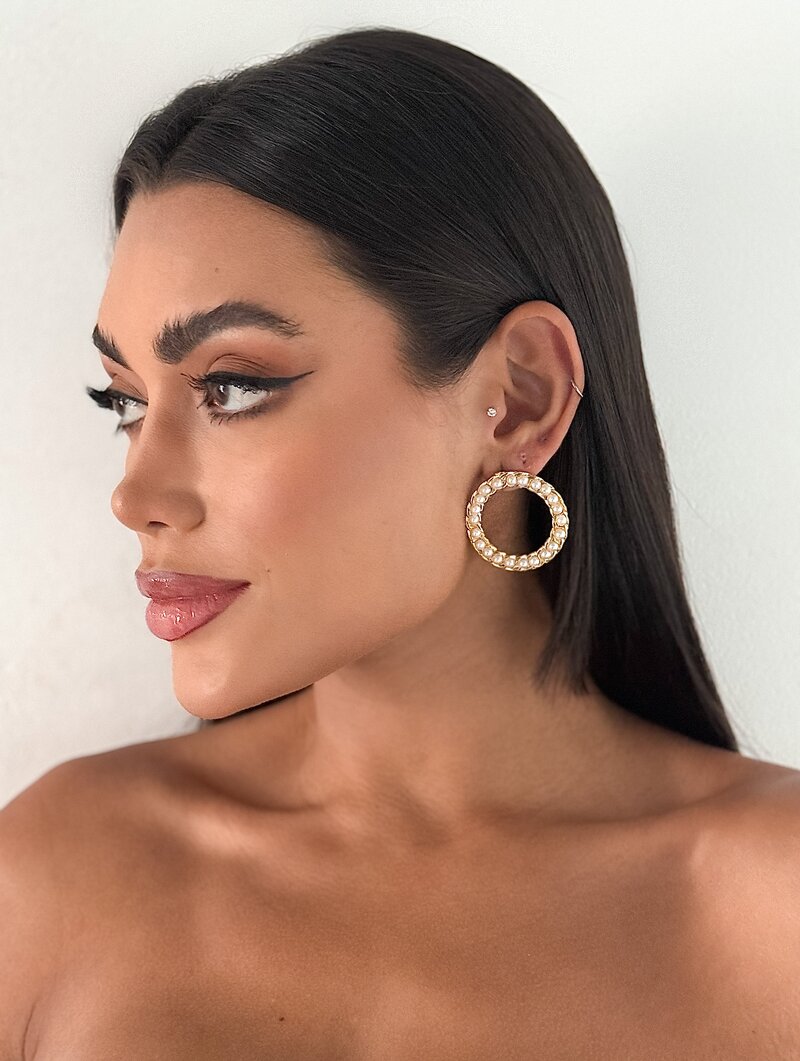 3. Brinco Folheado a Ouro 18k Argola com Pérolas