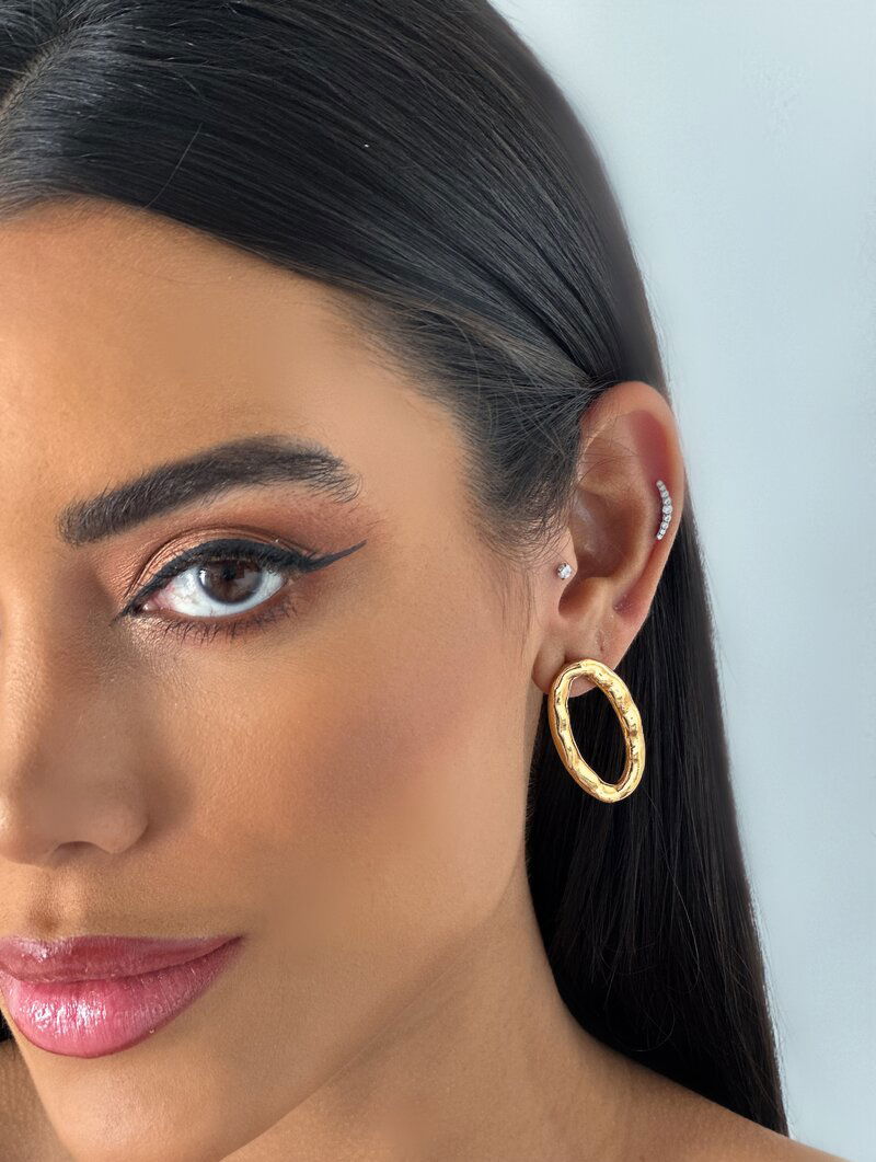 3. Brinco Folheado a Ouro 18k Argola Oval Martelada