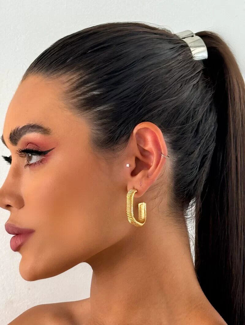 Brinco Folheado a Ouro 18k Argola Quadrada Texturizada