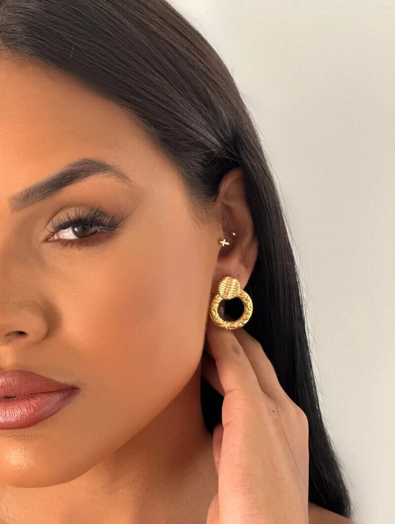 Brinco Folheado a Ouro 18k Argola Texturizada com Ponteira
