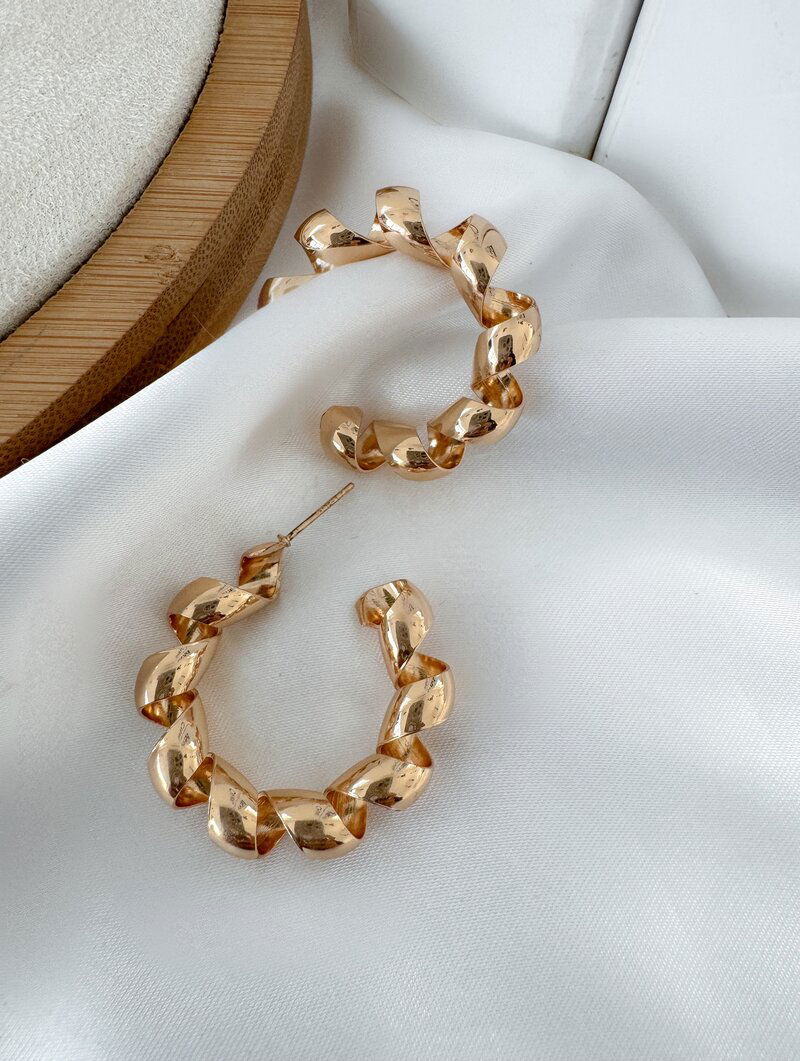 Brinco Folheado a Ouro 18k Argola Torcida Design Mola
