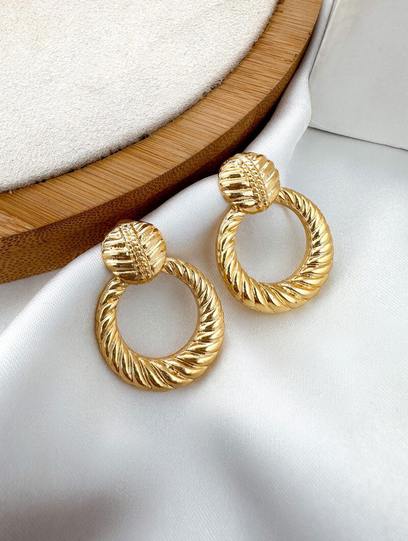 3. Brinco Folheado a Ouro 18k Argola Trabalhada com Ponteira