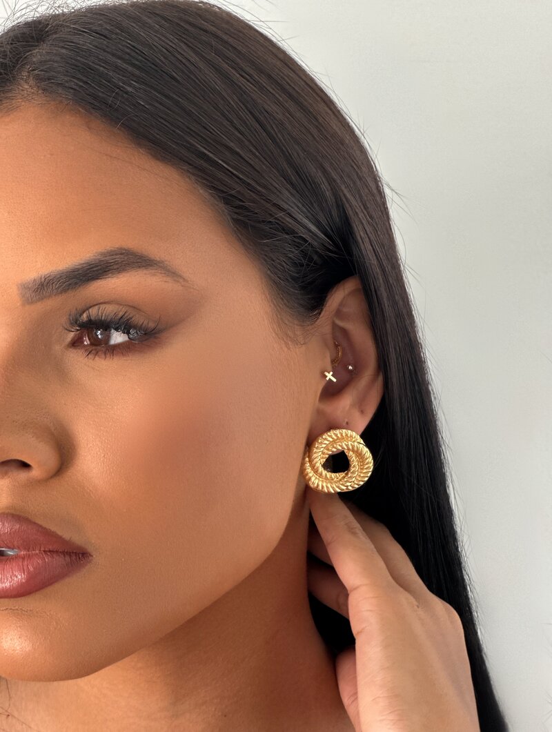3. Brinco Folheado a Ouro 18k Argola Trançada Texturizada