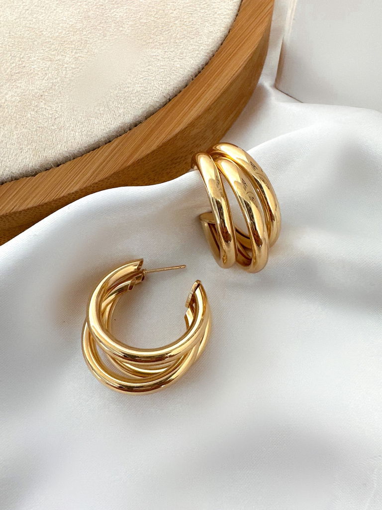 2. BRINCO FOLHEADO A OURO 18K ARGOLA TRÊS FIOS VAZADOS