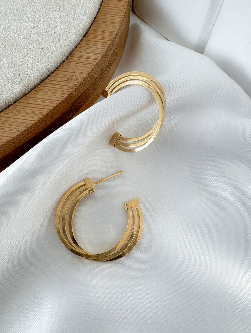 3. Brinco Folheado a Ouro 18k Argola Três Fios Vazados
