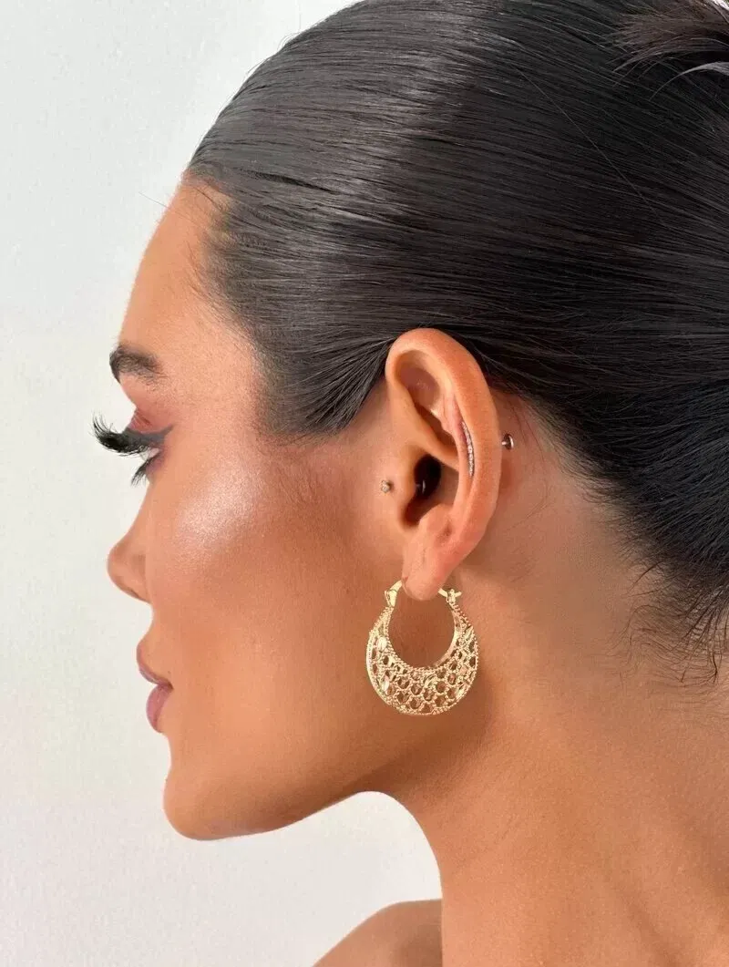 3. Brinco Folheado a Ouro 18k Argola Vazada com Fecho