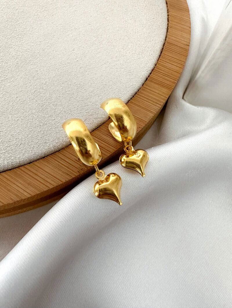 3. Brinco Folheado a Ouro 18k Argolinha com Coração