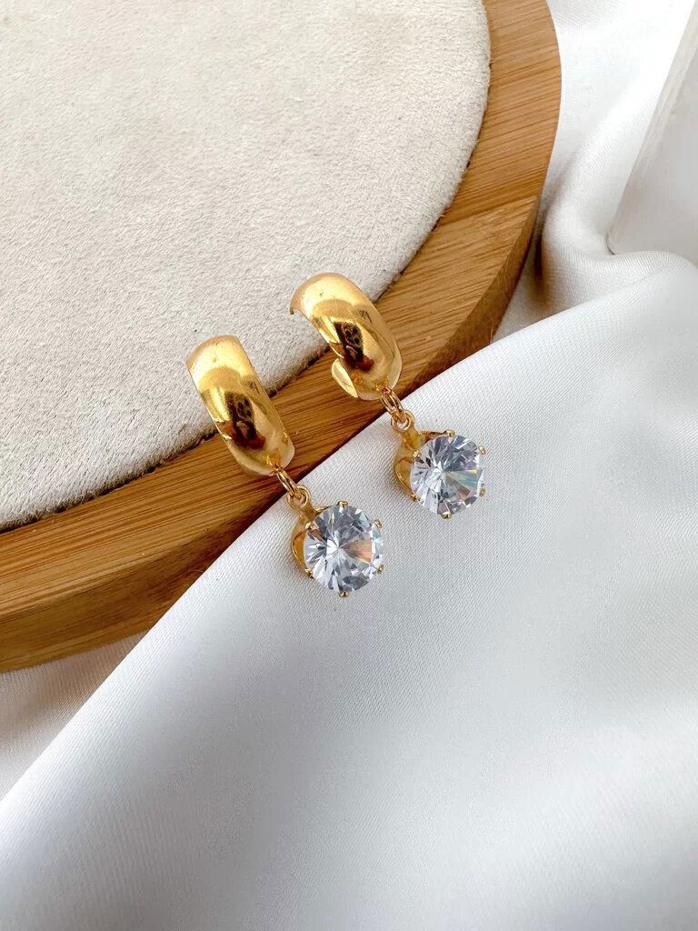 3. Brinco folheado a ouro 18k argolinha com pingente ponto de luz
