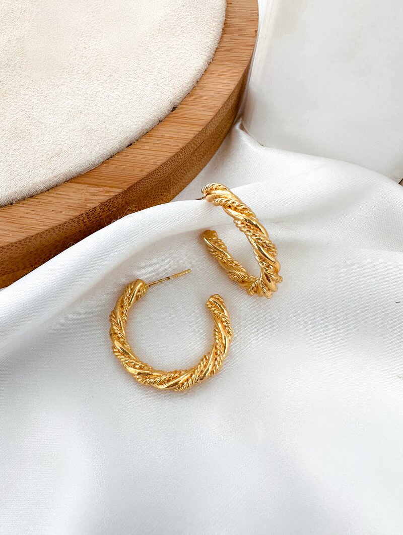 Brinco Folheado a Ouro 18k Argolinha Trançada