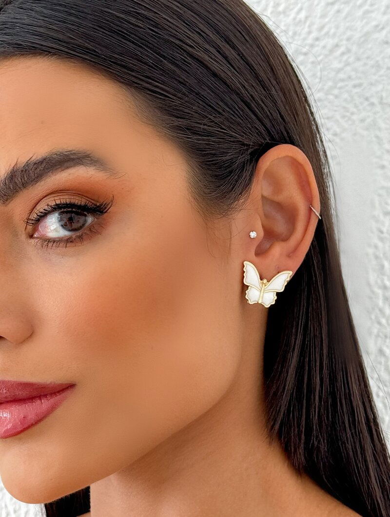 Brinco Folheado a Ouro 18k Borboleta Resinada