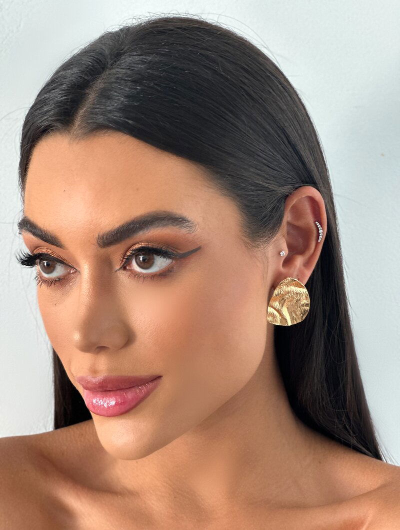3. Brinco Folheado a Ouro 18k Botton Gota Martelada