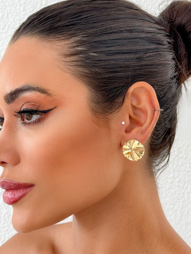 3. Brinco Folheado a Ouro 18k Botton Martelado