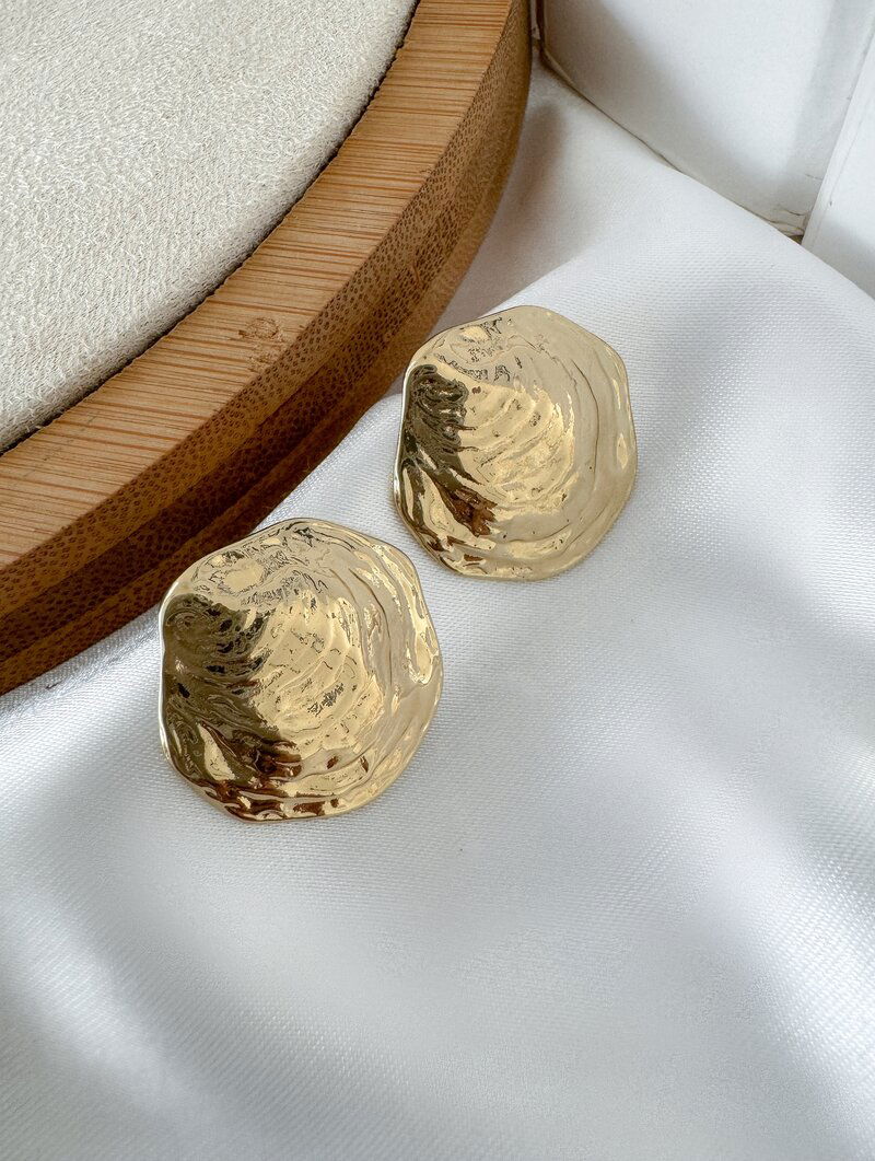 Brinco Folheado a Ouro 18k Botton Martelado Orgânico
