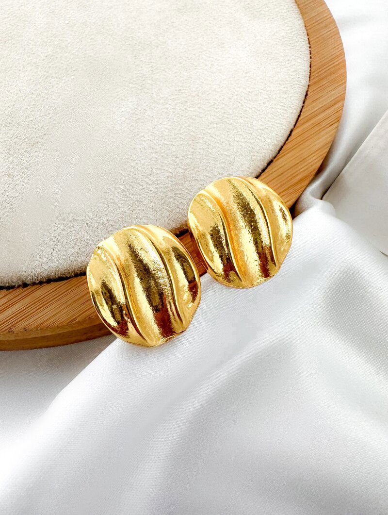 Brinco Folheado a Ouro 18k Botton Ondulado