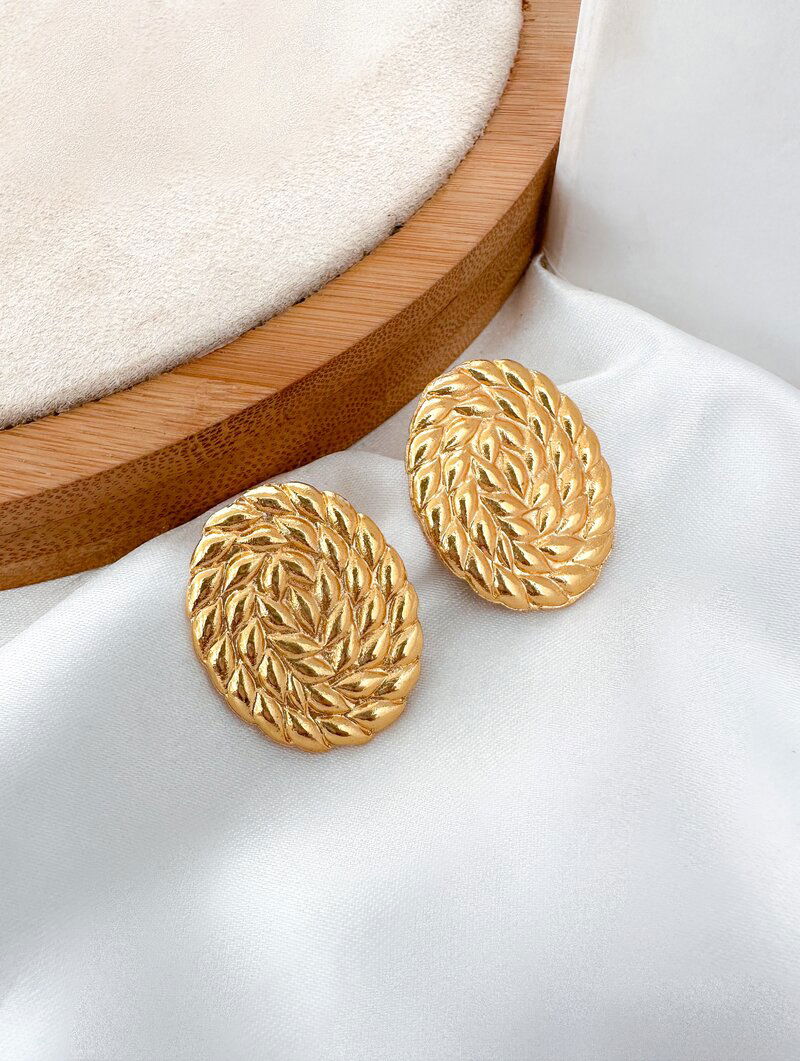 Brinco Folheado a Ouro 18k Botton Oval Trançado