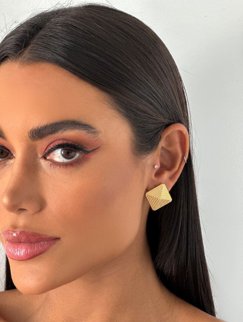Brinco Folheado a Ouro 18k Botton Quadrado Texturizado