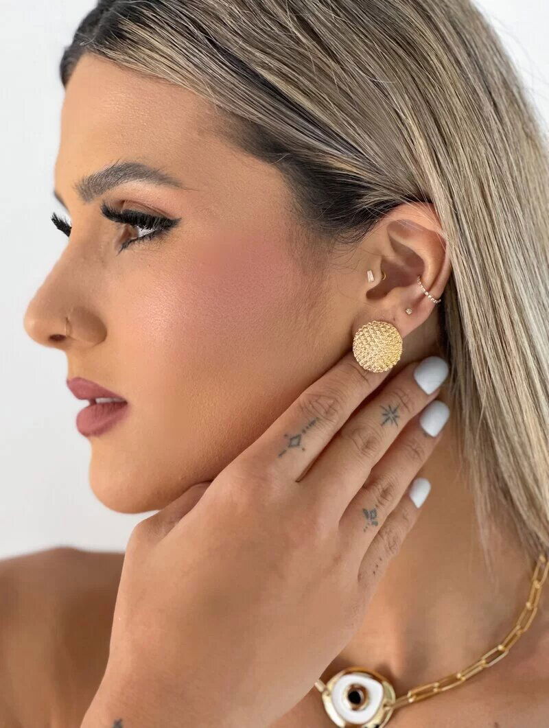 brinco folheado a ouro 18k botton texturizado