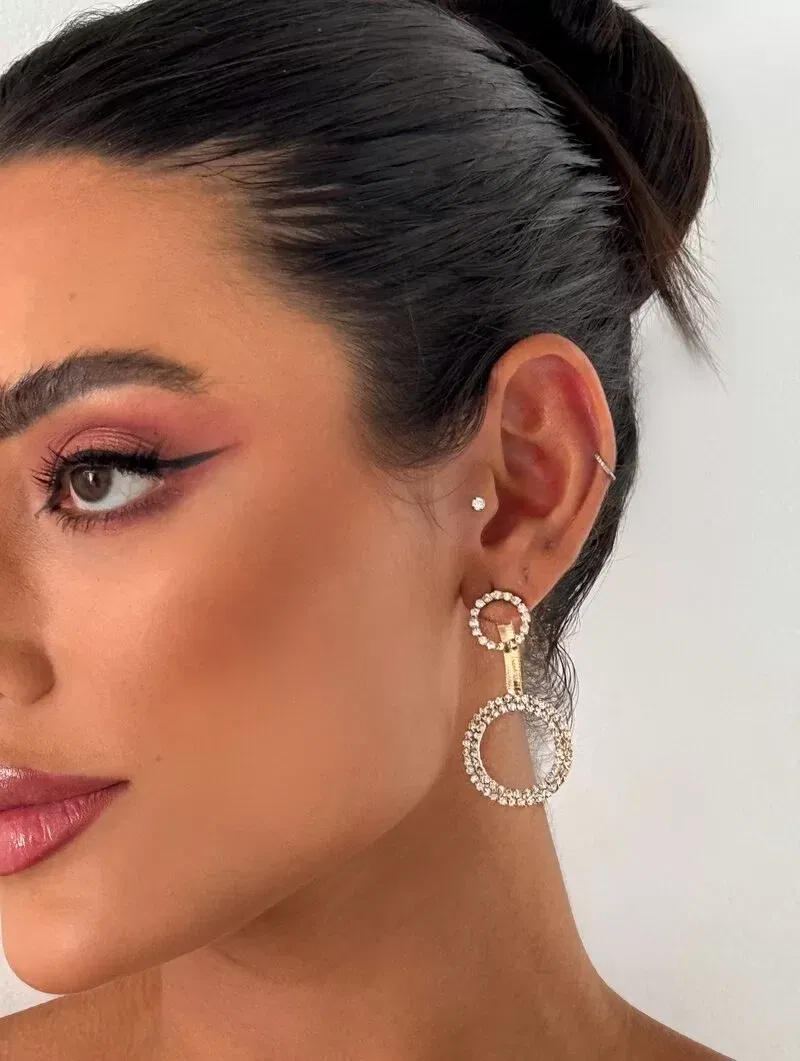 3. Brinco Folheado a Ouro 18k Circulos Cravejados com Fita Laminada