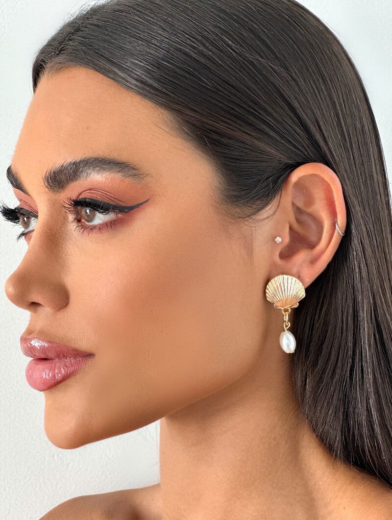 3. Brinco Folheado a Ouro 18k Concha com Pérola