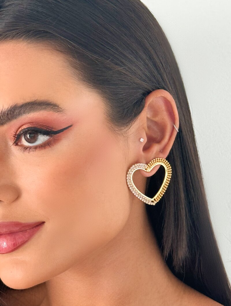 3. Brinco Folheado a Ouro 18k Coração com Zircônias