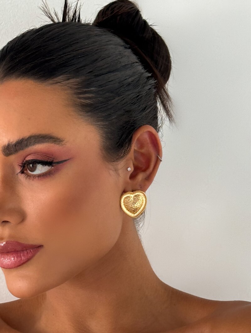 Brinco Folheado a Ouro 18k Coração Martelado com Borda