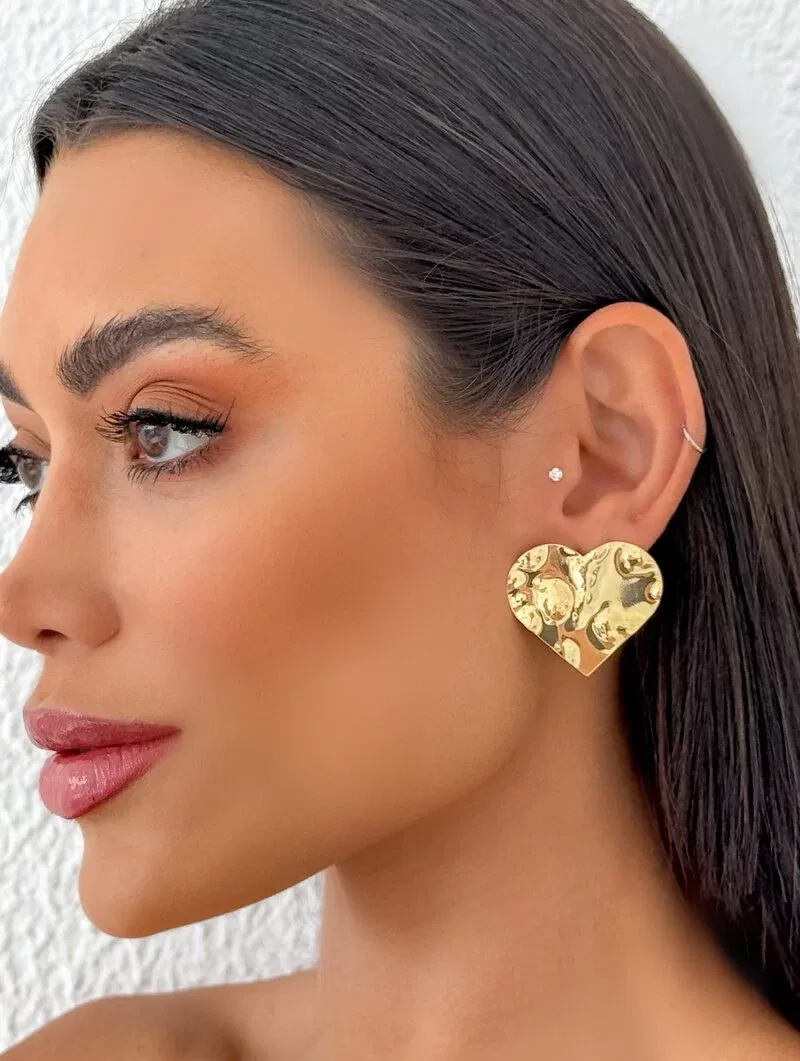 3. Brinco Folheado a Ouro 18k Coração Martelado Liso