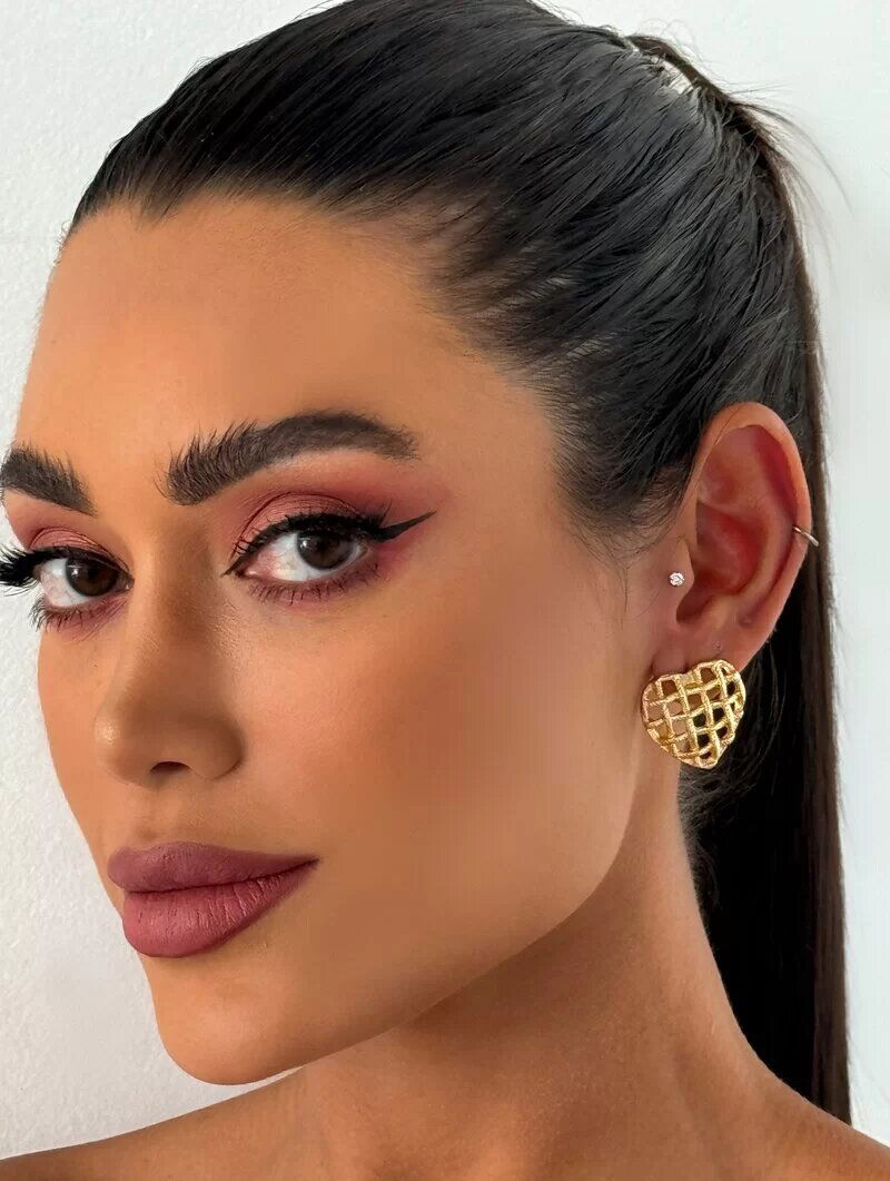 3. Brinco Folheado a Ouro 18k Coração Quadriculado