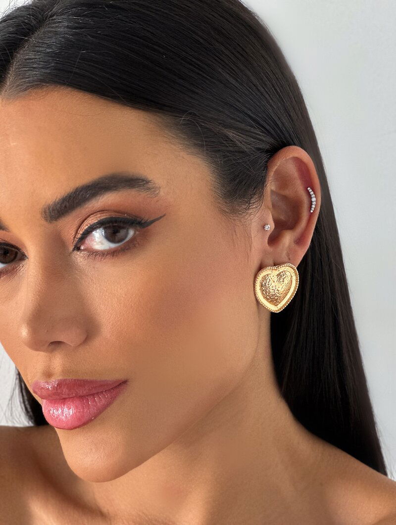3. Brinco Folheado a Ouro 18k Coração Trabalhado